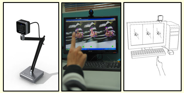 Three Dimensional Pointing using One Camera and Three Aligned Lights,